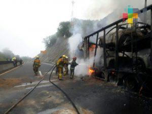 Se incendia tráiler en el Libramiento de Xalapa; no hay lesionados