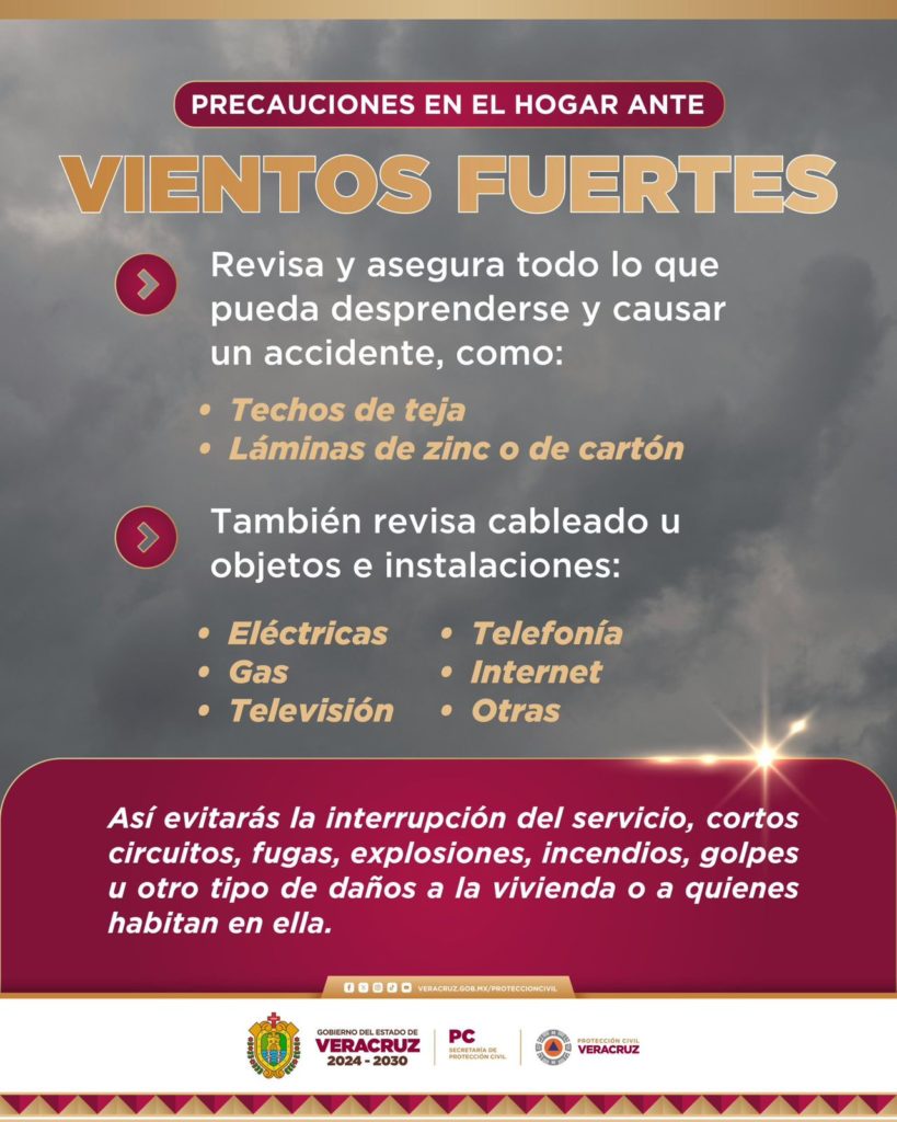 Este martes se presentará evento de norte con rachas de 100 a 120 kilómetros por hora en la zona de costa y de 45 a 60 kilómetros por hora en la región entre Xalapa-Naolinco-Misantla y valle de Perote.