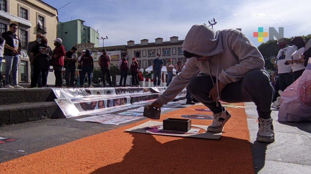 “Ya como los tapetes son tradicionales ahorita, para que sean más visibles nuestros desaparecidos y que nos tomen más en cuenta y si le pido al público en general, que no nos critiquen y que venimos a obstruir sus pasos, porque no es de todos los días, es hoy el día del desaparecido, yo como madre, no se imaginan, está aquí parte de mi corazón, de mis enfermedades a 12 años de mi hijo desaparecido”.