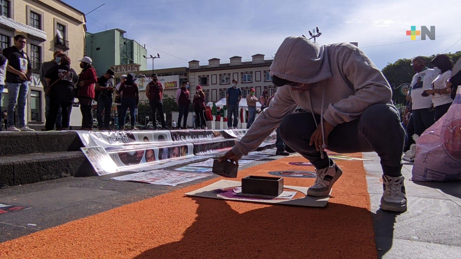 “Ya como los tapetes son tradicionales ahorita, para que sean más visibles nuestros desaparecidos y que nos tomen más en cuenta y si le pido al público en general, que no nos critiquen y que venimos a obstruir sus pasos, porque no es de todos los días, es hoy el día del desaparecido, yo como madre, no se imaginan, está aquí parte de mi corazón, de mis enfermedades a 12 años de mi hijo desaparecido”.