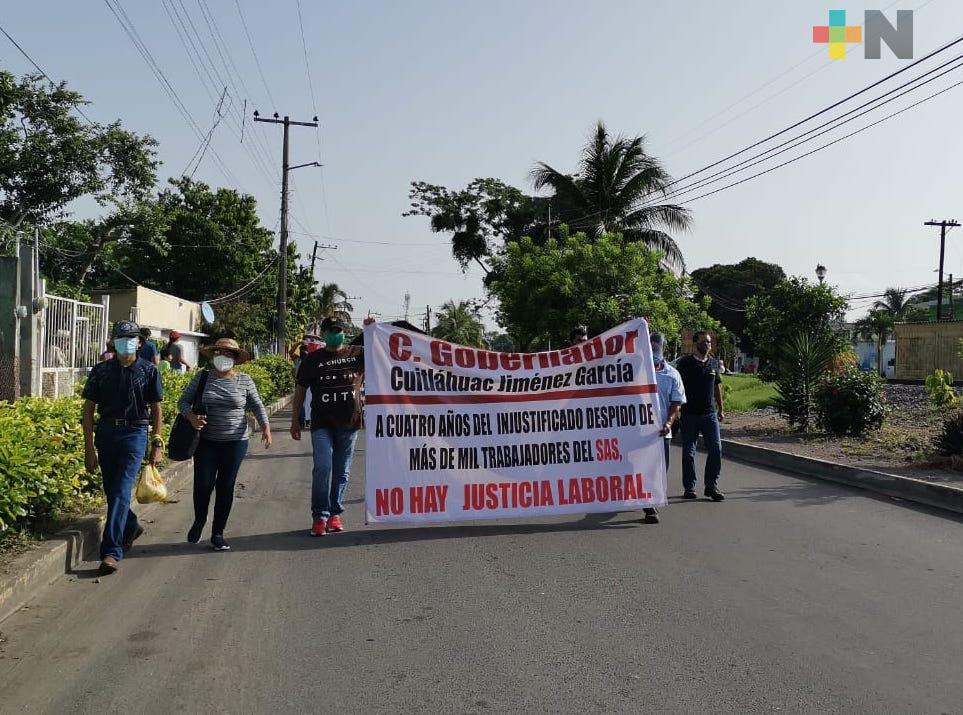 Veracruz, Ver.-A cuatro años de la extinción del Sistema de Agua y Saneamiento Metropolitano (SAS), los extrabajadores sindicalizados de dicho organismo salieron a las calles a manifestarse.