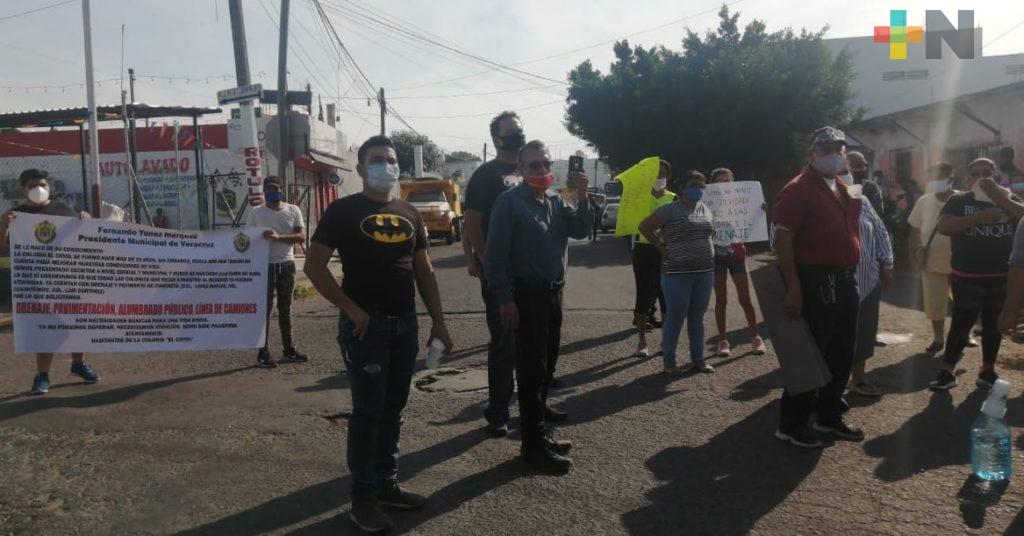 Veracruz, Ver.- Debido a la falta de drenaje, pavimentación y alumbrado público, vecinos de la colonia El Coyol se manifestaron en contra del Ayuntamiento de Veracruz.