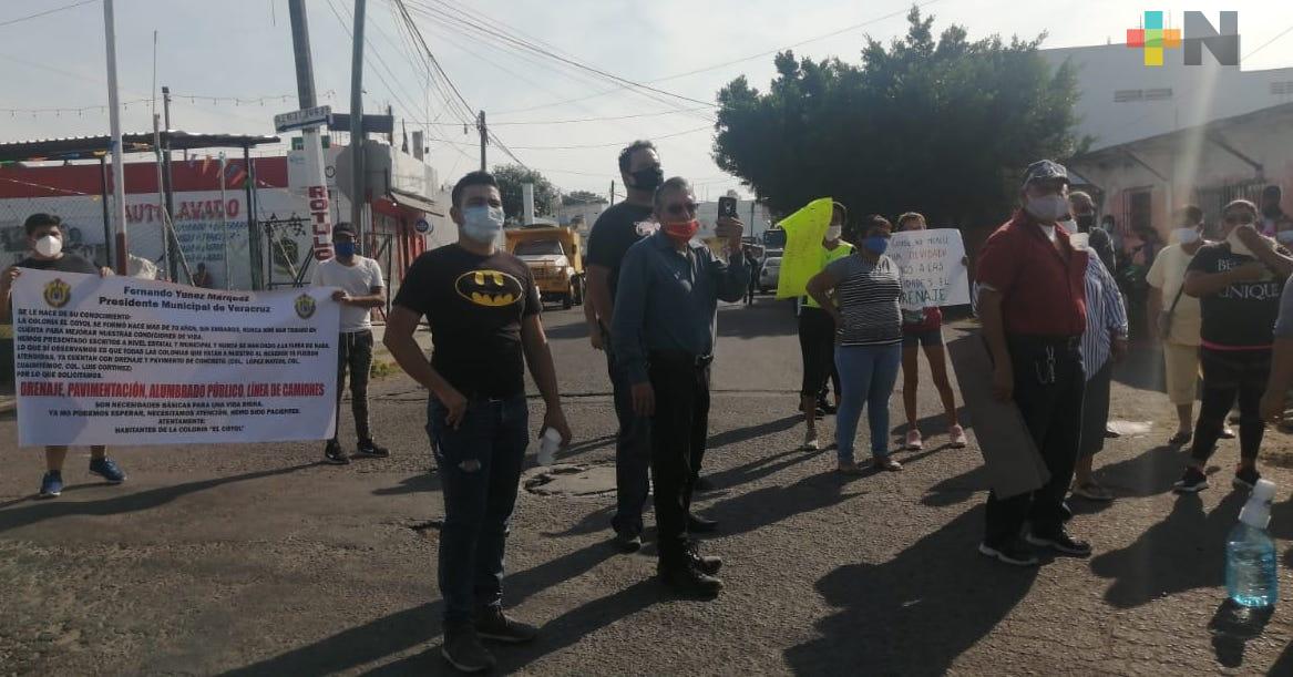 Se manifiestan vecinos de la colonia El Coyol, piden drenaje, pavimentación y alumbrado