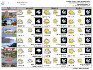 Se prevé cielo medio nublado con ocurrencia de nieblas o lloviznas matutinas en la costa y vespertinas a nocturnas en montañas.