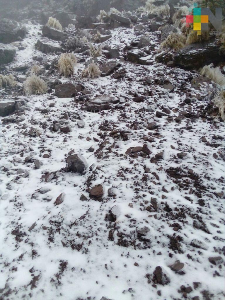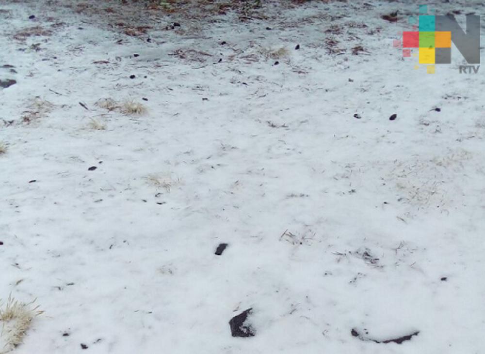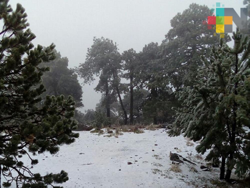 Perote, Ver.- En la parte más alta del Cofre de Perote los árboles cambiaron de tonalidad. El verdor del bosque se esfumó en un abrir y cerrar de ojos, prácticamente la montaña se pintó de blanco como resultado del paso del frente frío número 24.