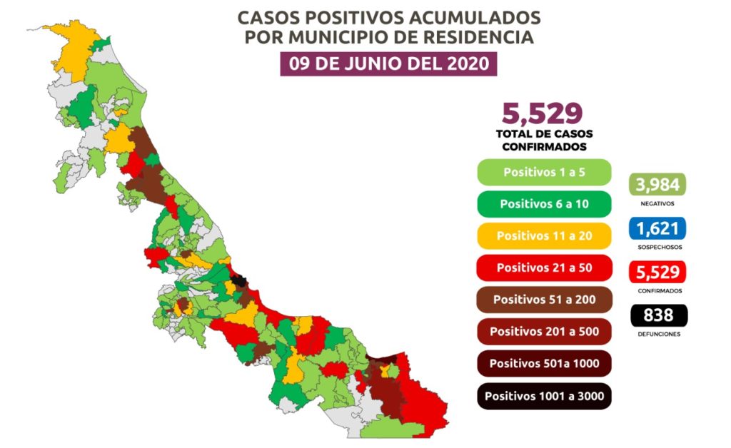 Xalapa, Ver.- Con 250 nuevos resultados, los casos positivos en Veracruz ascienden este martes a 5 mil 529 informó la Secretaría de Salud.