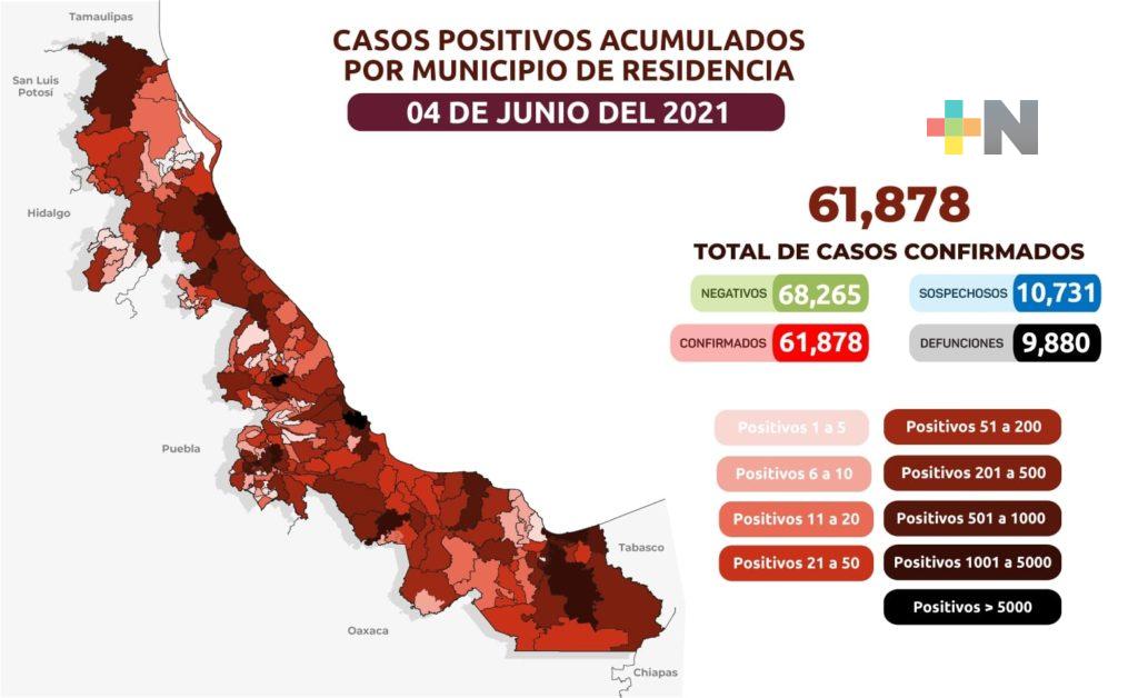 Xalapa, Ver.- La Secretaría de Salud reportó 89 nuevos casos nuevos confirmados de COVID-19 en la entidad,por lo que suman 61 mil 878.