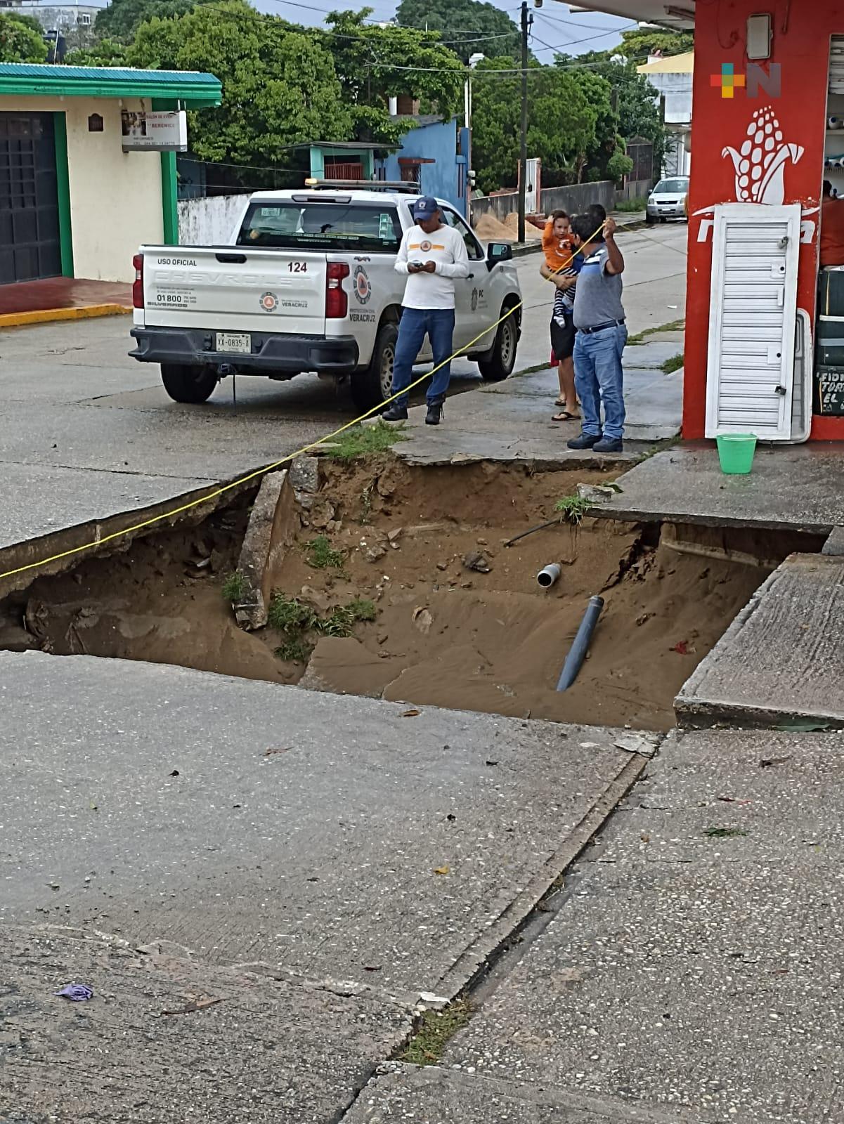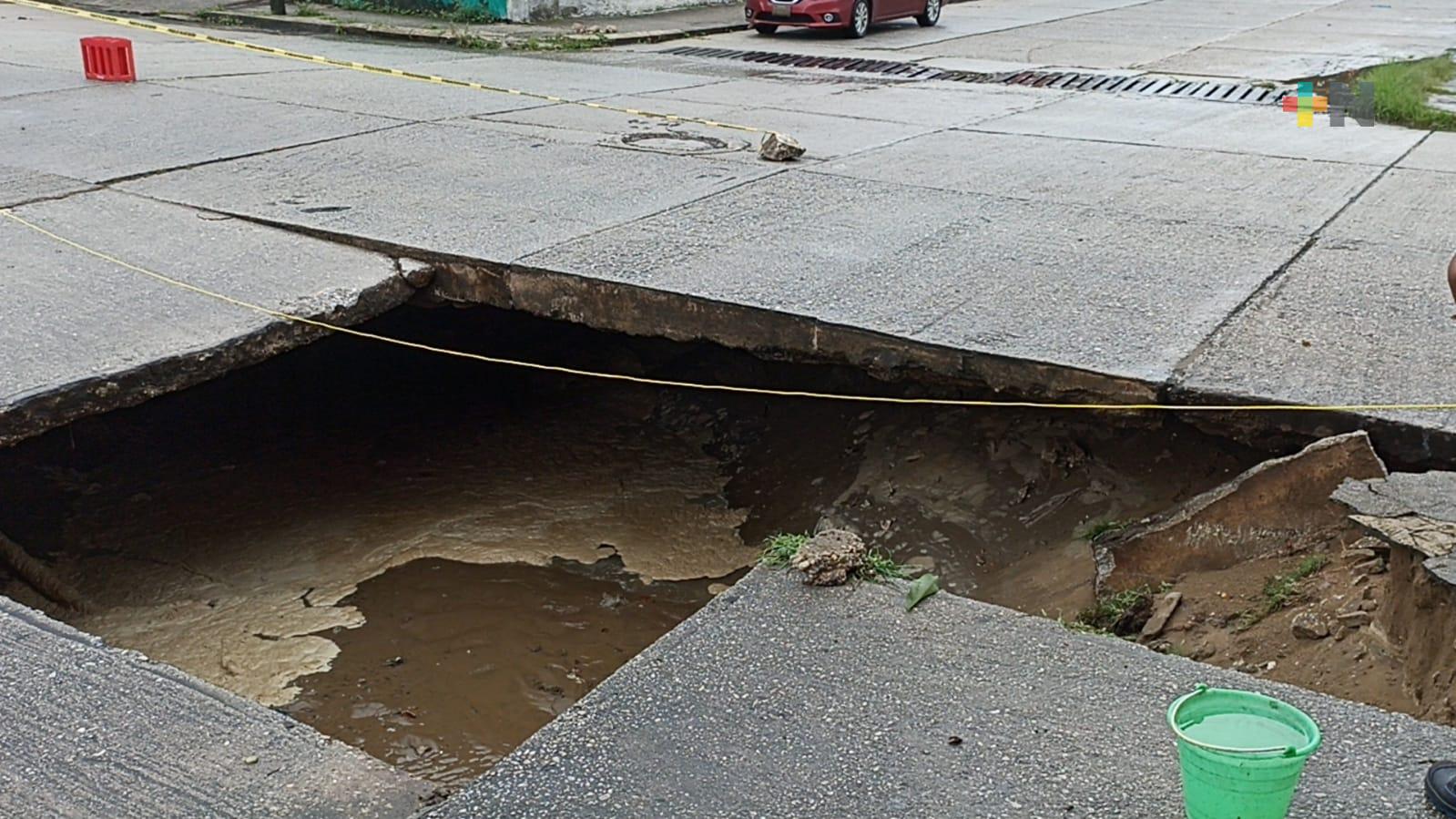 Se registró socavón en calles de Coatzacoalcos