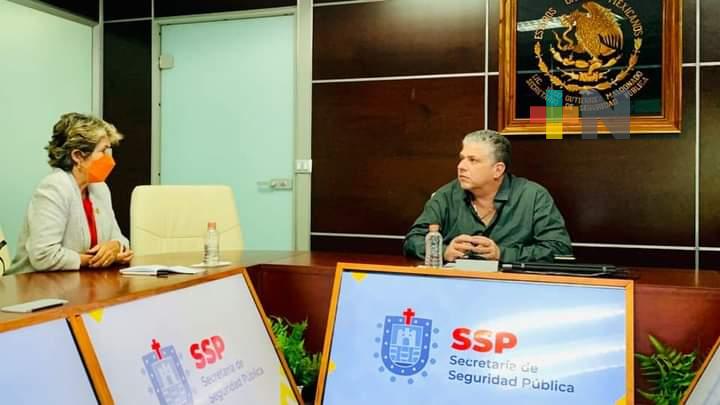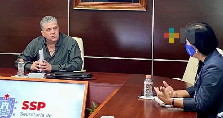 Xalapa, Ver.- Con el objetivo de seguir sumando esfuerzos para la seguridad ciudadana y prevención del delito en la entidad, este miércoles el secretario de Seguridad Pública en Veracruz, Hugo Gutiérrez Maldonado tuvo una reunión de trabajo con la Vicepresidenta Nacional Región Golfo de CANACINTRA, Claudia de la Huerta Manjarrez y Presidenta Delegación CANACINTRA Minatitlán, Marisol González Cales.