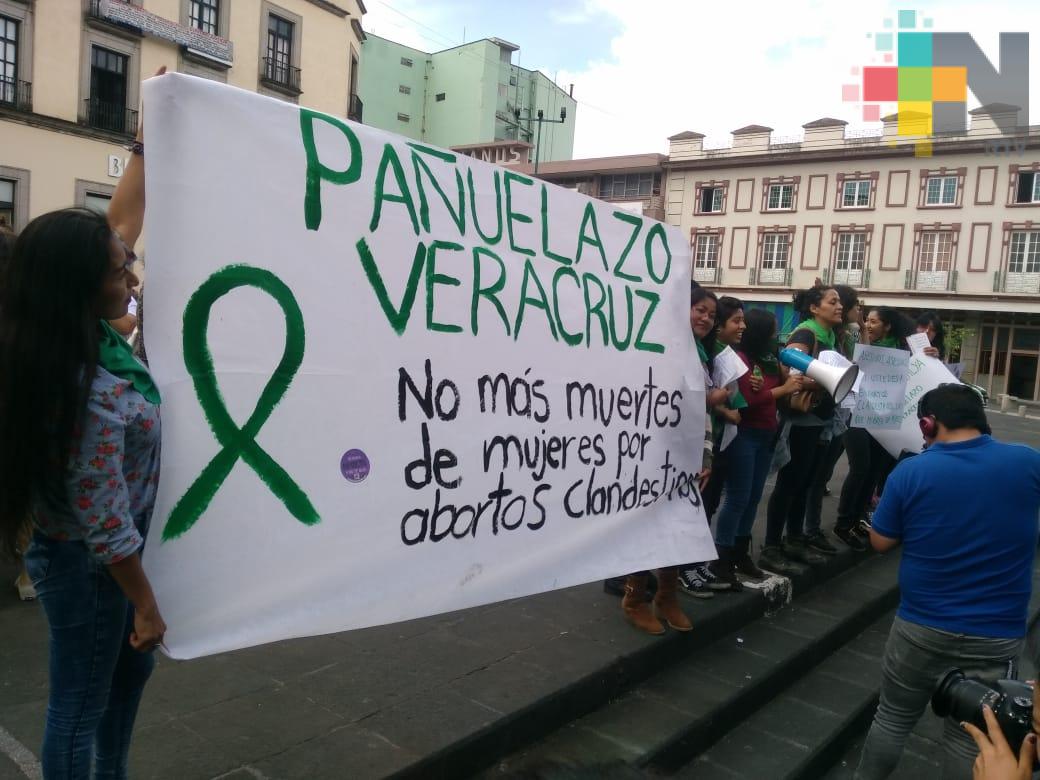 Xalapa, Ver.- Este martes mujeres en Xalapa realizaron el Pañuelazo Veracruz, en unión a la iniciativa Pañuelazo Verde cuya consigna es la despenalización del aborto.