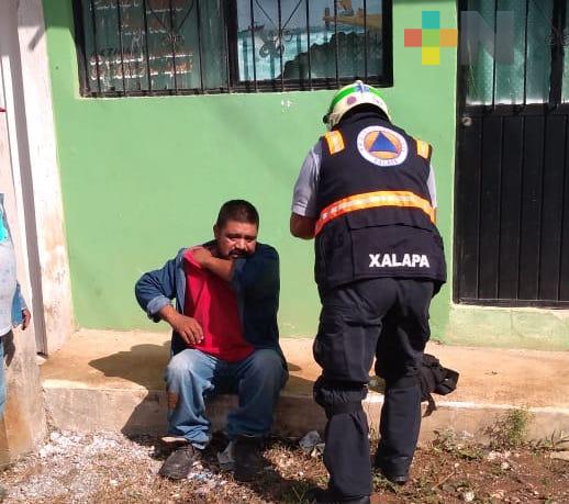 Xalapa, Ver.- Elementos de la Dirección de Protección Civil municipal atendieron la volcadura de una camioneta distribuidora de gas en cilindros, que transitaba sobre la colonia Marina Nacional de esta ciudad.