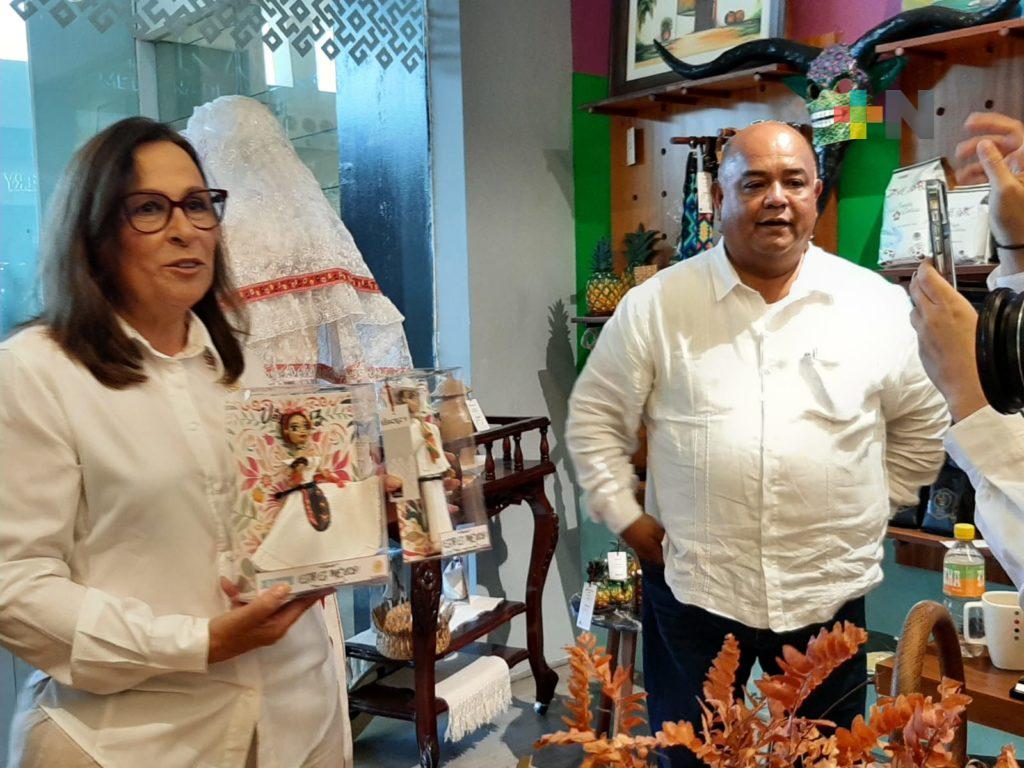 Acompañada por el secretario de Gobierno, Eric Cisneros Burgos, la funcionaria federal visitó y recorrió la tienda Veracruz me llena de Orgullo, espacio donde se exhiben y están a la venta artesanías y productos veracruzanos, iniciativa que señaló debería replicarse en todo el país.