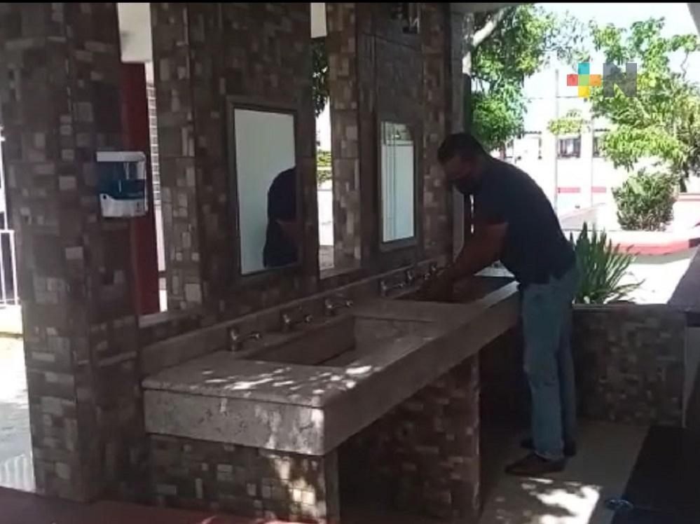 Para evitar que se concentre una gran cantidad de alumnos, abrirán las puertas desde las 6 de la mañana y conforme vayan llegando, entrarán a sus aulas, pasando por los accesos donde les medirán la temperatura y habrá dispensadores de gel antibacterial, que terminarán de colocar este fin de semana.