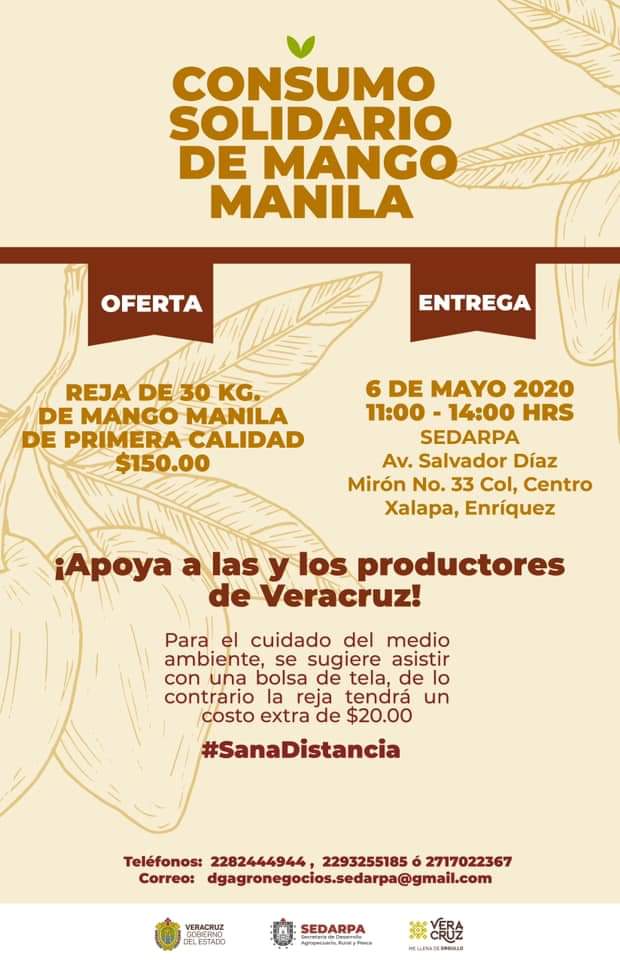 Xalapa, Ver.- El secretario de Desarrollo Agropecuario, Rural y Pesca del Estado de Veracruz, Eduardo Cadena Cerón informó que con la finalidad de apoyar a los productores y productoras de mango manila de Veracruz, la SEDARPA servirá de canal para la comercialización del fruto.