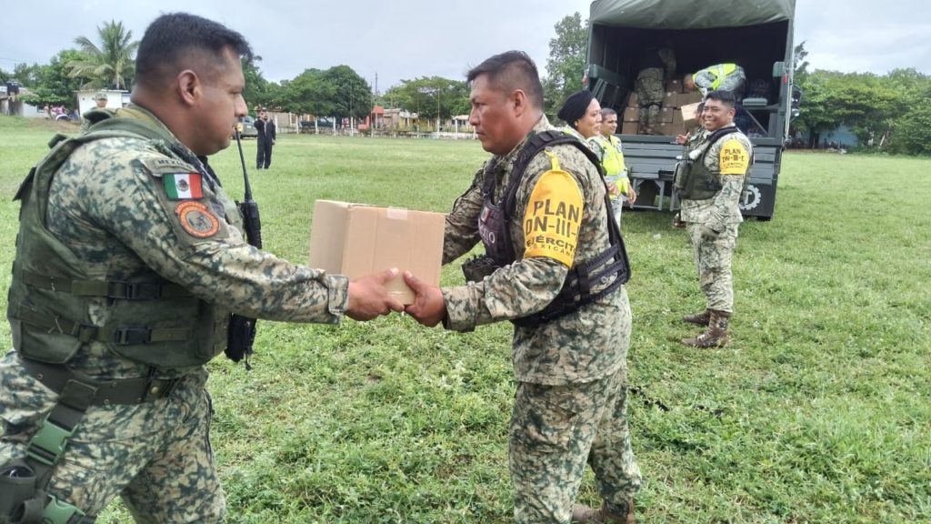 El teniente coronel de infantería, Felipe Ascencio Rosas, segundo comandante del 45 Batallón de Infantería, detalló que el apoyo es para municipios como: San Juan Evangelista, Sayula, Playa San Vicente, Isla, entre otros.