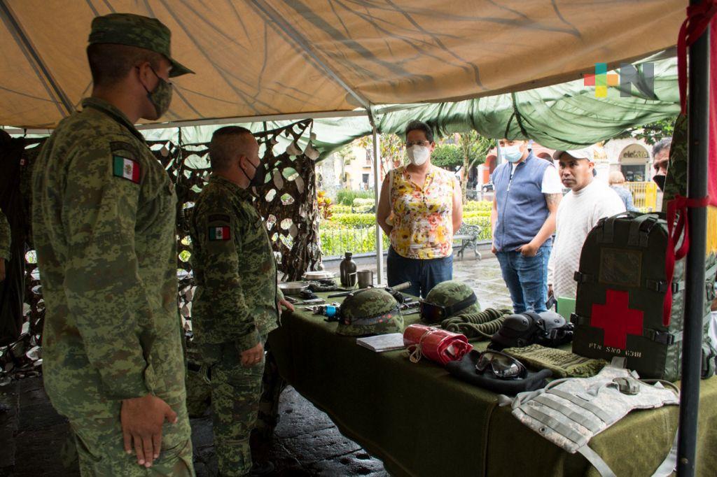 Córdoba, Ver.- La Secretaría de la Defensa Nacional (Sedena) instaló este fin de semana en el parque 21 de Mayo y los bajos del Palacio Municipal de Córdoba, la exposición fotográfica, de equipo, uniformes y unidades automotores con motivo del 55 aniversario de la implementación del Plan DN-III-E y como parte de los festejos del bicentenario de la firma de los Tratados de Córdoba.
