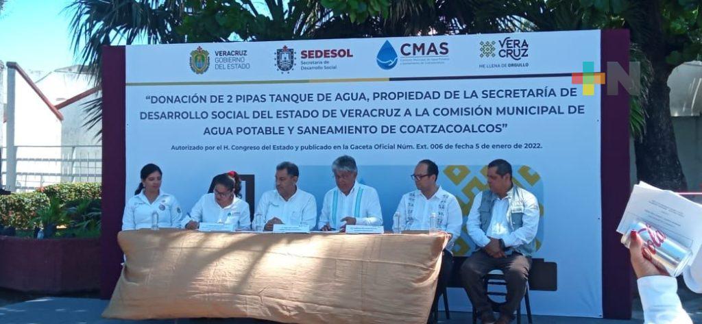 Sedesol Veracruz dona pipas de agua a CMAS Coatza