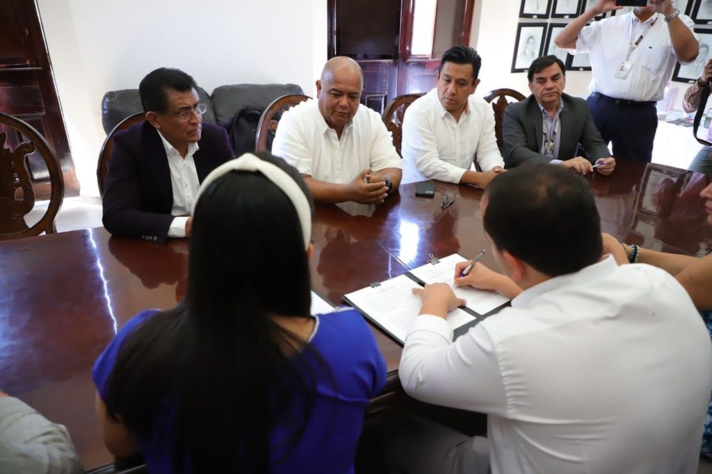 - El secretario de Gobierno, Eric Cisneros y el alcalde coatepecano, Raymundo Rivera presidieron la signatura del convenio de colaboración