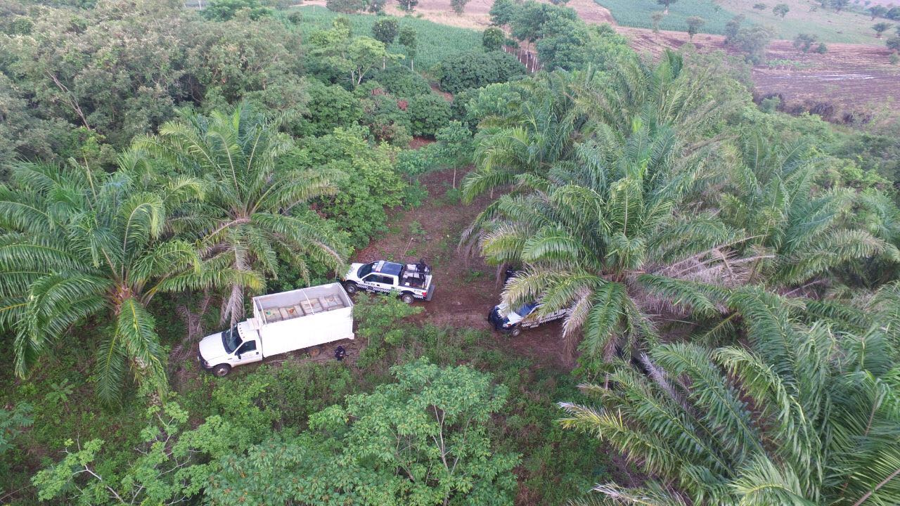 Acayucan, Ver.- Mediante el uso de drones, elementos de la Secretaría de Seguridad Pública en coordinación con la Base de Operaciones Mixta (BOM), localizaron una camioneta cargada con ocho bidones de combustible robado, de mil litros cada uno.