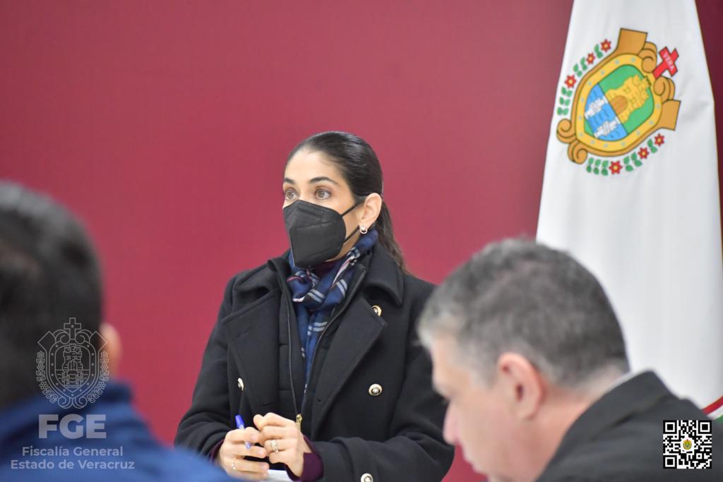 Emiliano Zapata, Ver.- En instalaciones de la Fuerza Civil en Emiliano Zapata, la Fiscal General del Estado, Verónica Hernández Giadáns participó en la Mesa de Coordinación para la Construcción de la Paz para informar acciones realizadas en las pasadas horas 24 horas mediante las cuales se logró el cumplimiento de ocho mandamientos judiciales, seis detenciones en flagrancia y la localización de cinco personas que se encontraban en calidad de desaparecidas.
