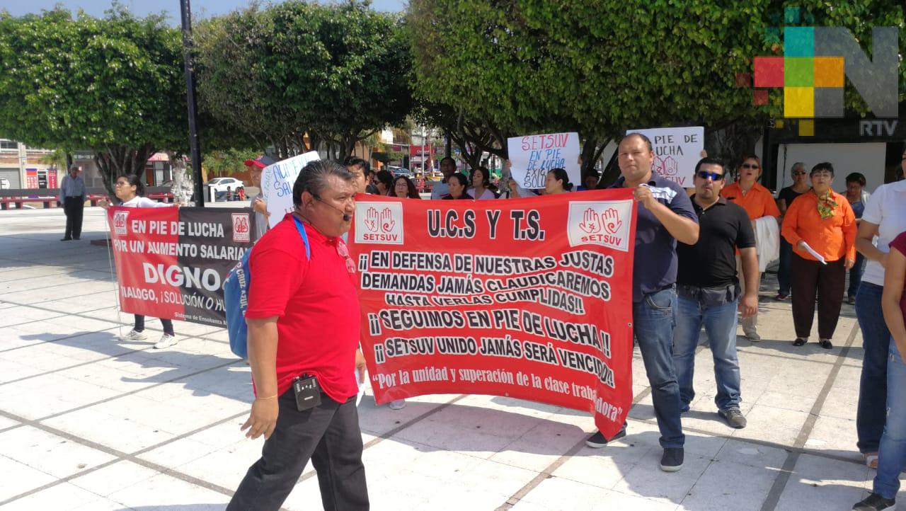 Asimismo en Coatzacoalcos se manifestaron en el parque Independencia en contra del aumento del 3.35 por ciento a su salario. Los inconformes, argumentaron que el sueldo que quiere darles la institución es muy poco y no cubre las necesidades de los profesores y administrativos agremiados al SETSUV.