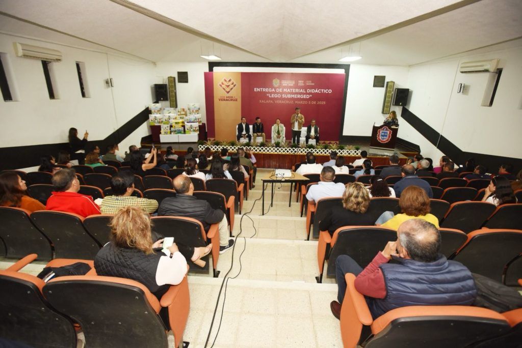 En el evento, realizado en el auditorio de la Benemérita Escuela Normal Veracruzana Enrique C. Rébsamen, ocho planteles de preescolar, 10 de primaria y 13 de secundaria recibieron material educativo diseñado para explorar la vida submarina y fomentar la conciencia ambiental sobre la conservación de los océanos.