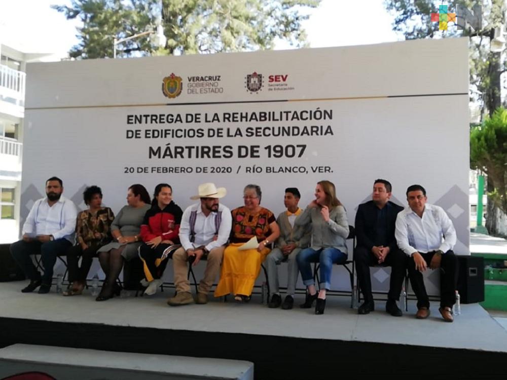 Río Blanco, Ver.- La Secretaría de Educación de Veracruz (SEV) a través del Instituto de Espacios Educativos, hizo entrega de la obra de rehabilitación de edificios en la escuela secundaria «Mártires de 1907», ubicada en el municipio de Río Blanco.