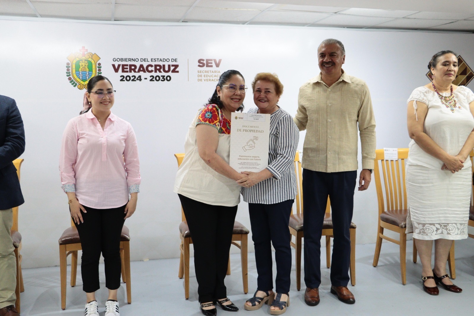 Xalapa, Ver.- Planteles con hasta 94 años de antigüedad, como la Secundaria Oficial A Lic. Marco Antonio Muñoz T. y el Bachillerato Oficial de Alvarado, recibieron sus documentos de propiedad por parte de la Secretaría de Educación de Veracruz (SEV), como parte del programa Patrimonio Seguro, Educación con Futuro.