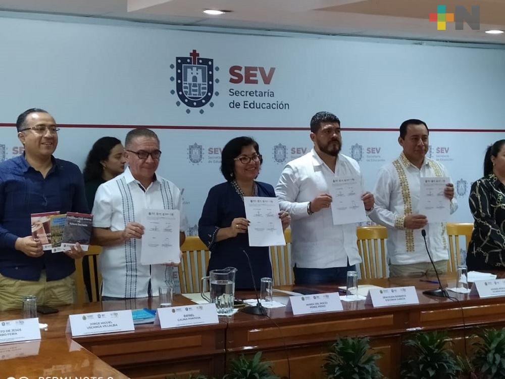 La firma del convenio contó con la presencia de los titulares de las subsecretarías de Educación Básica de la Universidad Popular Autónoma de Veracruz (UPAV) y de la de Educación Indígena, entre otros, quienes testimoniaron el acuerdo y se integrarán a las actividades a realizarse.