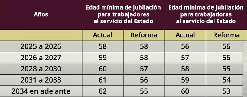 “Iba subiendo la edad mínima de jubilación que se pedía en la reforma del 2007 para las y los trabajadores al servicio del Estado, el decreto de la Presidenta consiste en que esto ya no ocurra, que no se siga aumentando la edad mínima para jubilarse, es decir, detener y reducir gradualmente la edad mínima de jubilación”, aseguró.
