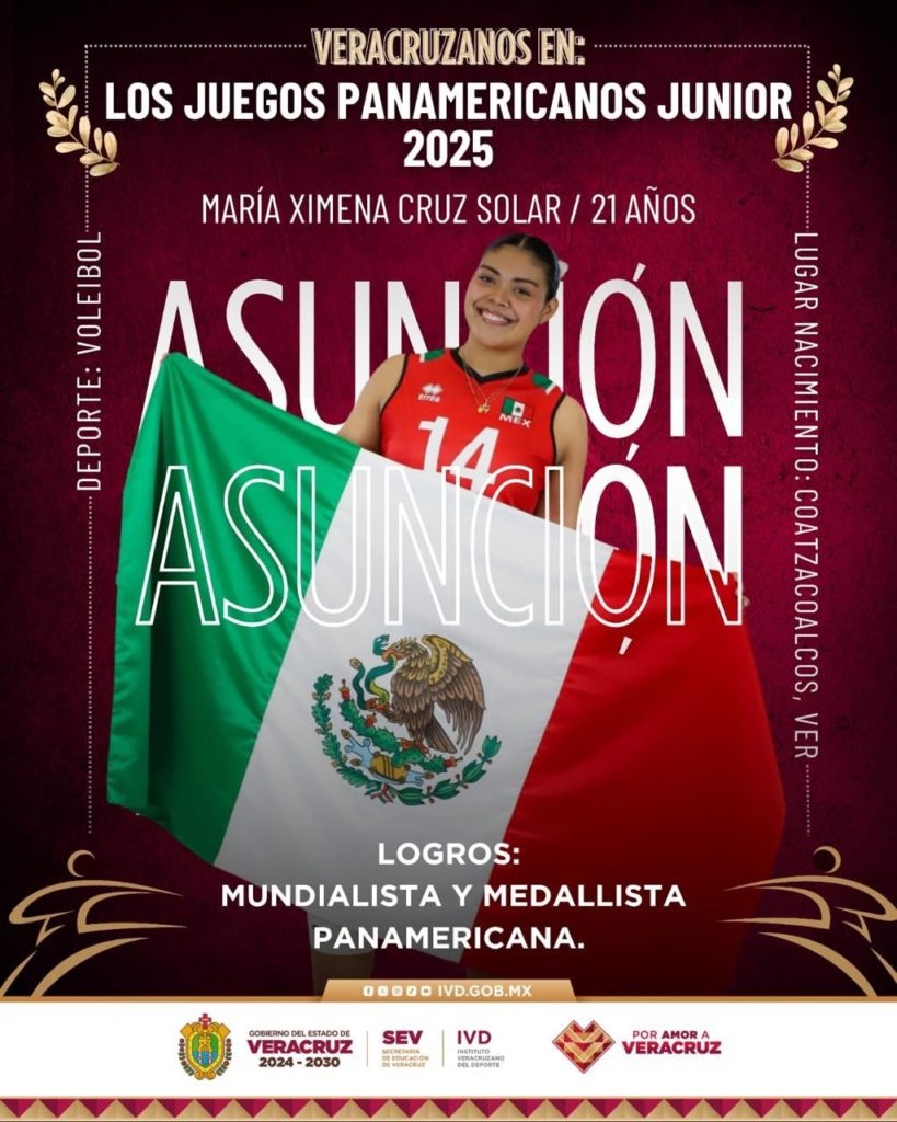 En voleibol, Veracruz suma dos representantes. María Ximena Cruz Solar, de 21 años y de Coatzacoalcos, ha sido parte de la selección nacional en competencias internacionales. Ganó bronce en la Olimpiada Nacional 2018 y plata con México en la Copa Panamericana en Hermosillo.