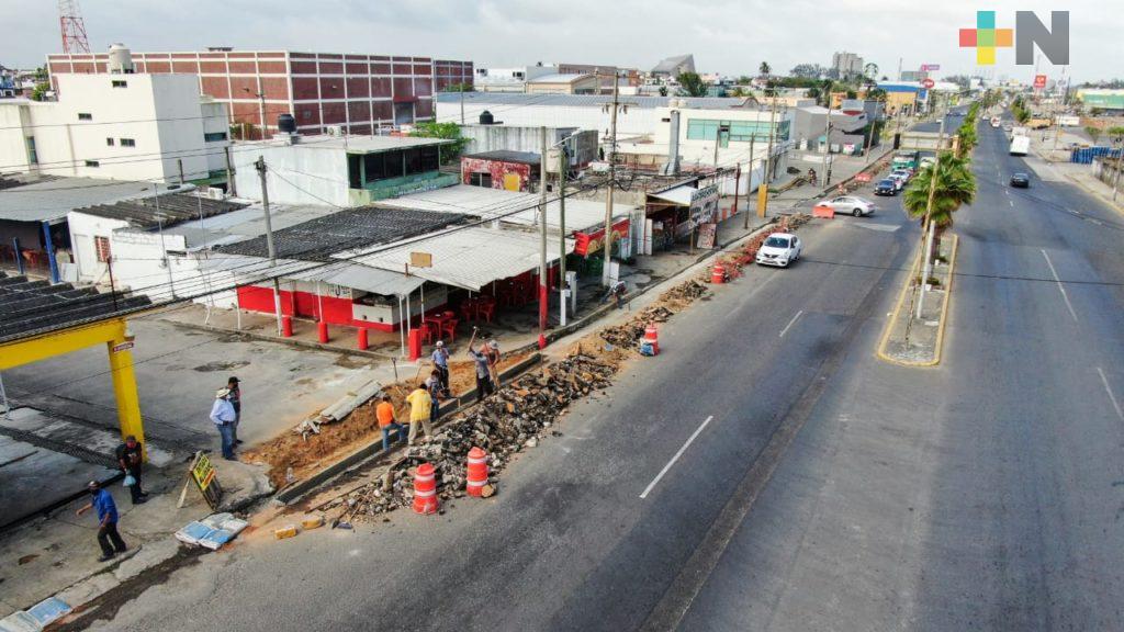 Coatzacoalcos, Ver.- Un avance de poco más del 40 por ciento llevan los trabajos de reencarpetamiento de la avenida Universidad, en Coatzacoalcos.