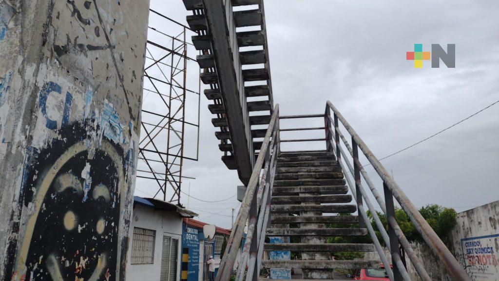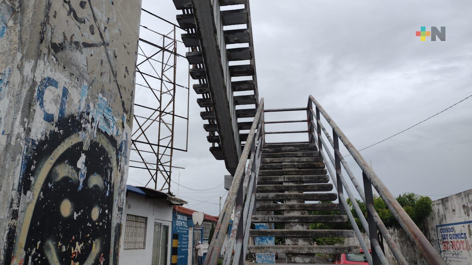Veracruz, Ver.- El puente peatonal del bulevar Rafael Cuervo de Veracruz dejó de ser funcional antes de la pandemia por Covid-19. No tiene barandales en la parte superior y los accesos quedaron cerrados para siempre. El paso de los años le cobró factura.