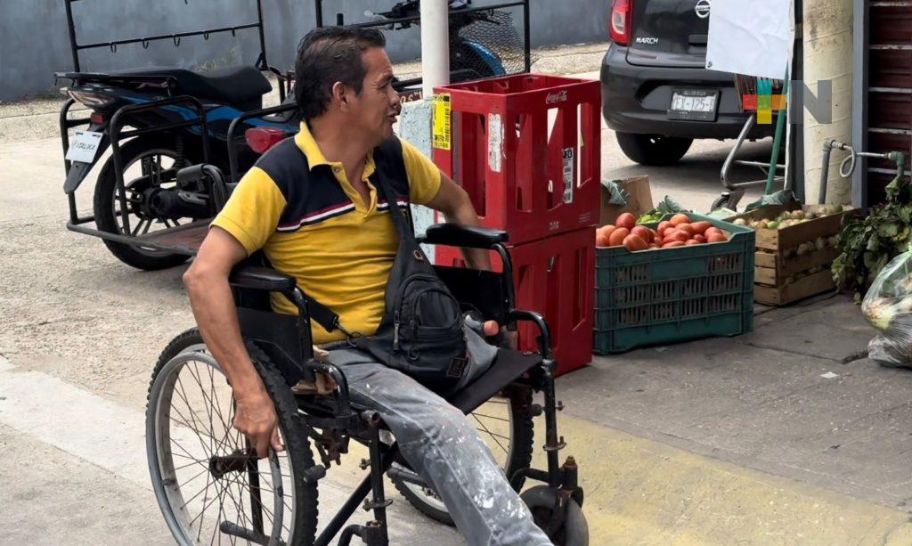 Coatzacoalcos, Ver.- Iván Manzano lleva más de 20 años en silla de ruedas y se gana la vida entregando mandaditos en motocicleta.