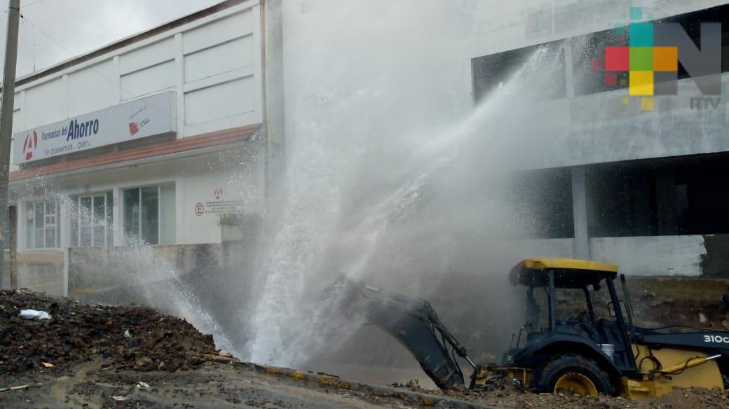 El incidente provocó la fuga de miles de litros de agua a presión y la movilización de elementos de Protección Civil municipal, trabajadores de la obra y de la comisión.