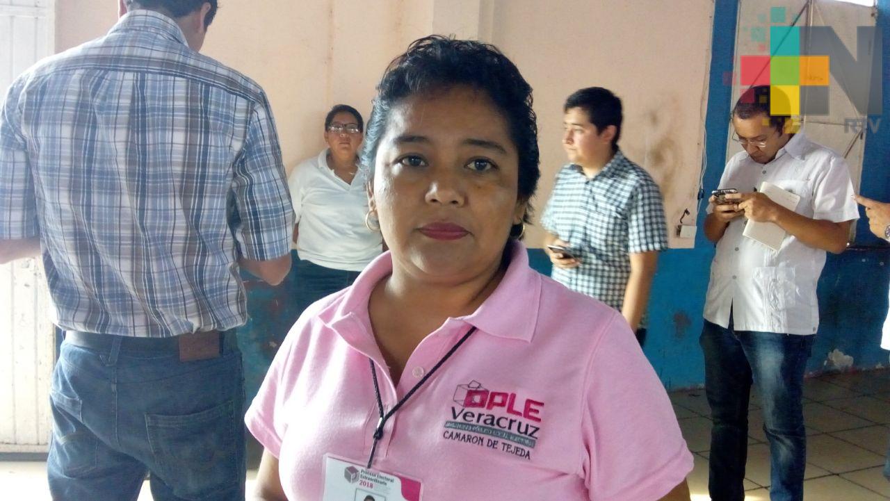 Camarón de Tejeda, Ver.- Sin ningún inconveniente se están llevando a cabo las elecciones extraordinarias en Camarón de Tejeda, así lo informó la presidenta del OPLE en este municipio, Araceli Gutiérrez Rodríguez.