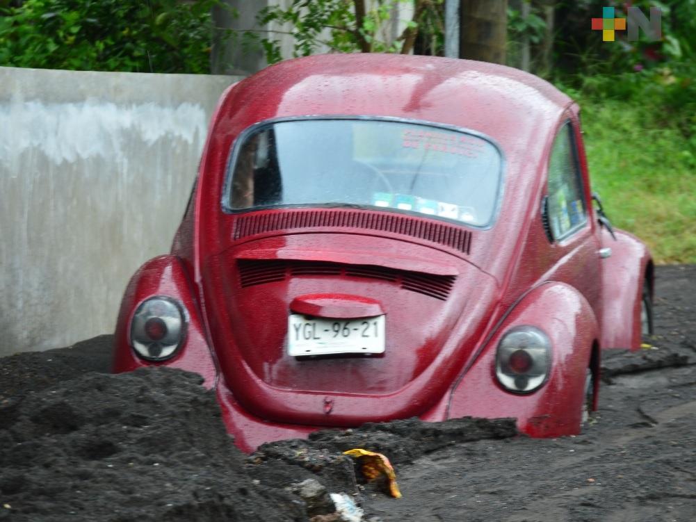 Santiago Tuxtla, Ver.- Las lluvias no han parado al sur de Veracruz, la zona de Los Tuxtlas es de las más afectadas por el momento. El agua arrastró material petreo y arena, algunos vehículos quedaron semi enterrados.