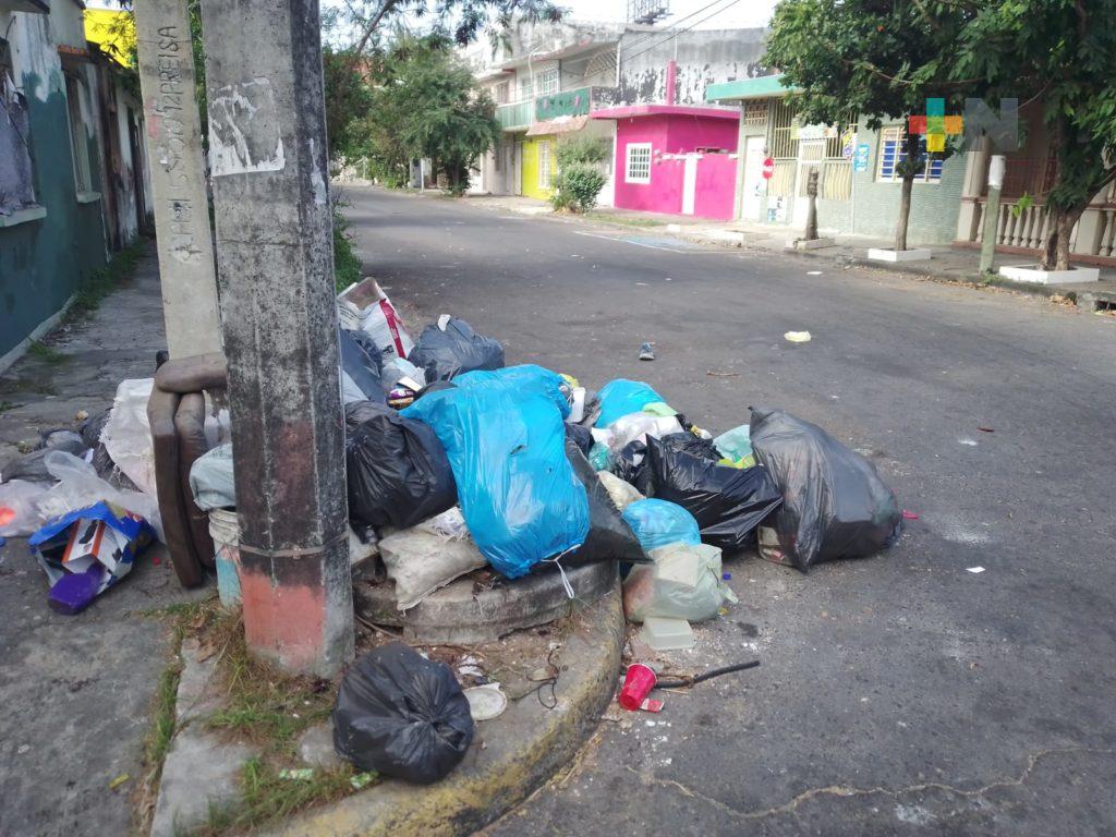 Veracruz, Ver.- En diferentes colonias del municipio de Veracruz, personal de Limpia Pública municipal no ha pasado por las calles, provocando en diferentes puntos una acumulación importante de desechos.