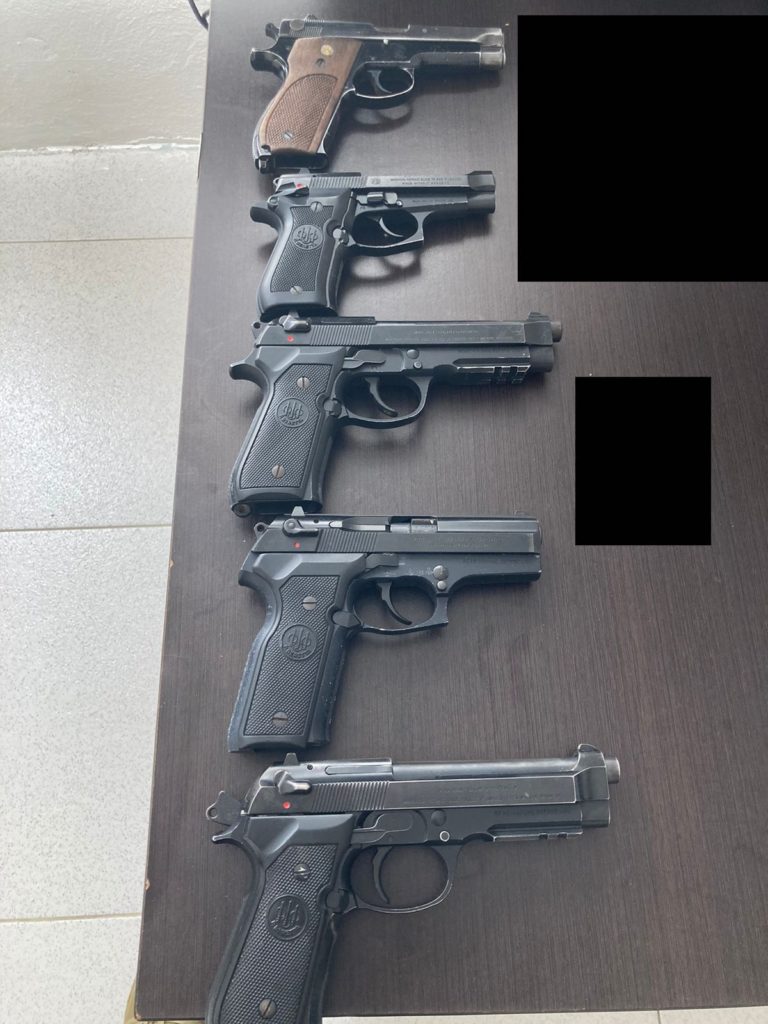 No obstante, fueron detenidos y durante la revisión del vehículo en el que viajaba y uno más que lo escoltaba, les fueron aseguradas cinco armas cortas y dinero en efectivo aún sin cuantificar.
