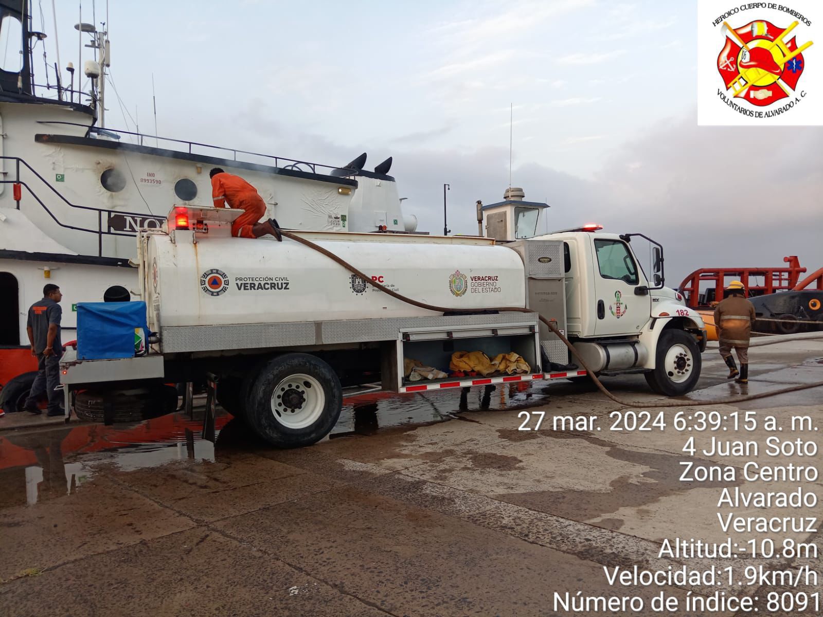 Veracruz, Ver.- La madrugada de este miércoles se incendió un barco tipo remolcador en el muelle del municipio de Alvarado.