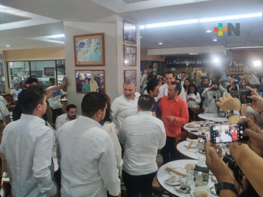 Veracruz, Ver.- Este jueves 12 de enero llegó al puerto de Veracruz el secretario de Gobernación, Adán Augusto López, el funcionario federal fue recibido por el gobernador del Estado, Cuitláhuac García Jiménez con quien desayunó en conocido restaurante ubicado en el malecón.