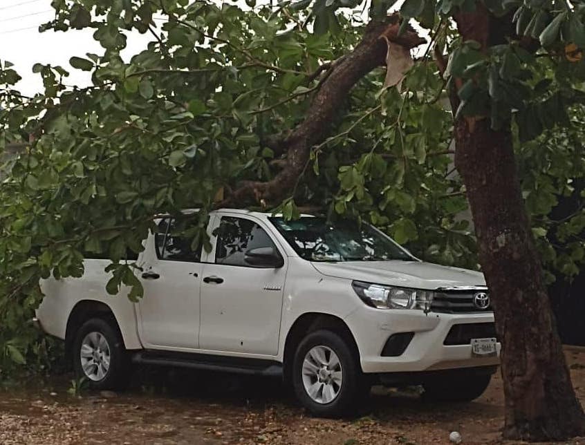 También hay 15 árboles caídos, y afectación en la escuela primaria Juan Aldama en Villa Juanita por destechamiento de 3 aulas y caída de un domo.