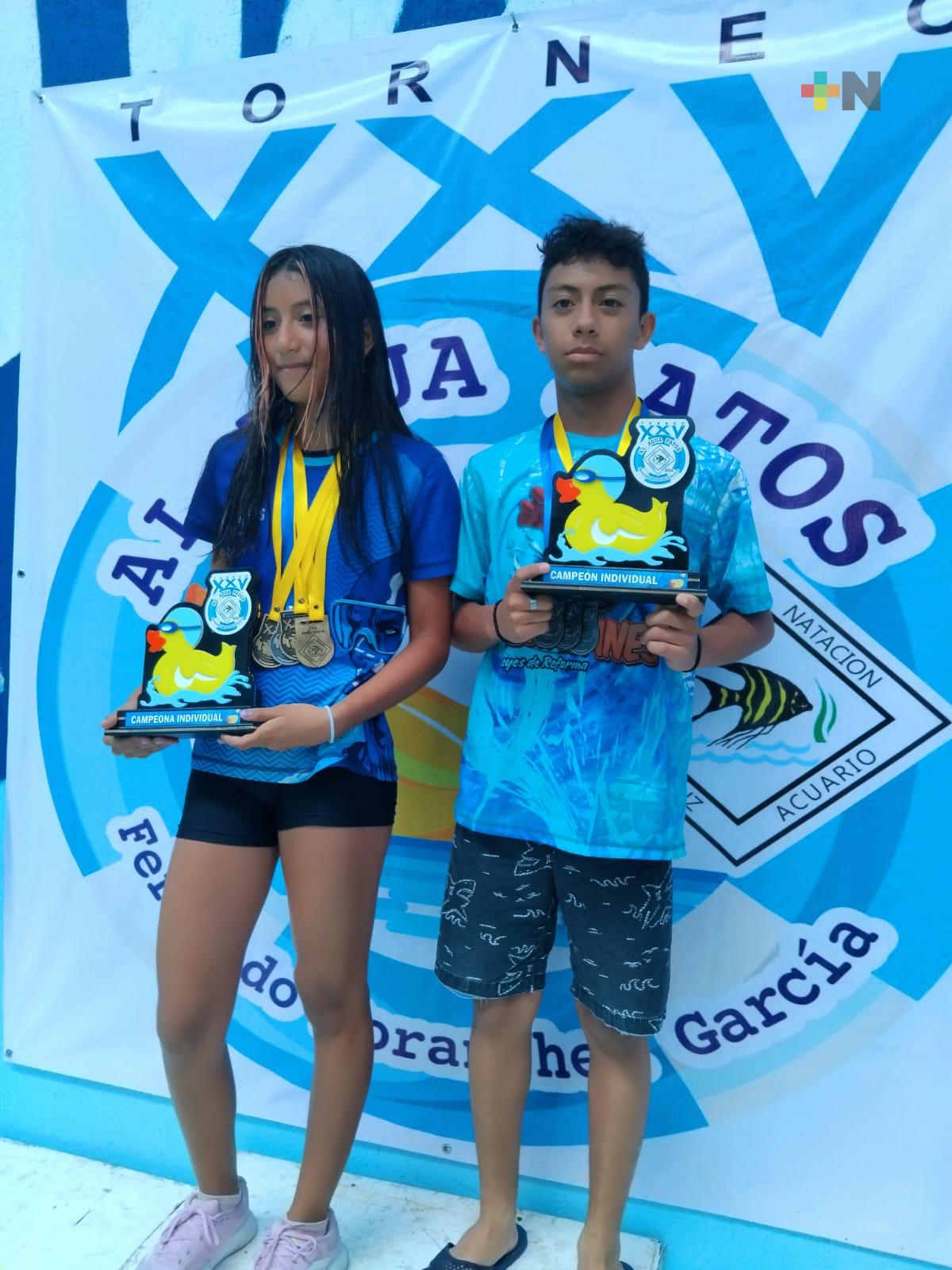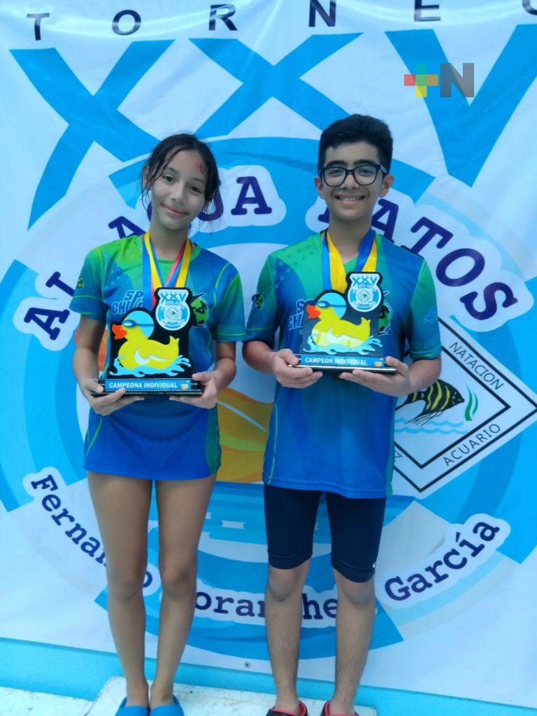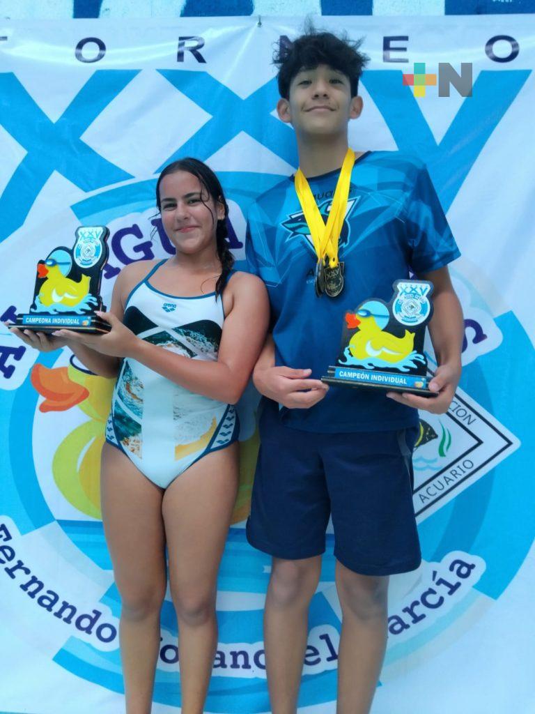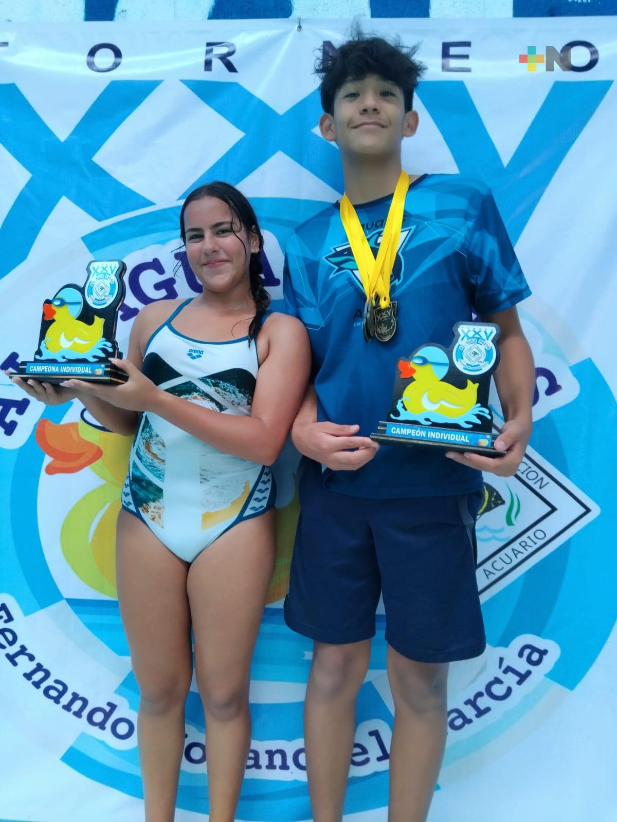 La categoría 11-12 años: Maya Rayas (Sport) y Daniel Montiel (Sport), 13-14 años Analí Fernández (Titanes) y Leonardo Benito (Huracanes), 15 y mayores: Paula Hinojosa (Sport) y Edgar Guerrero (Squalos).