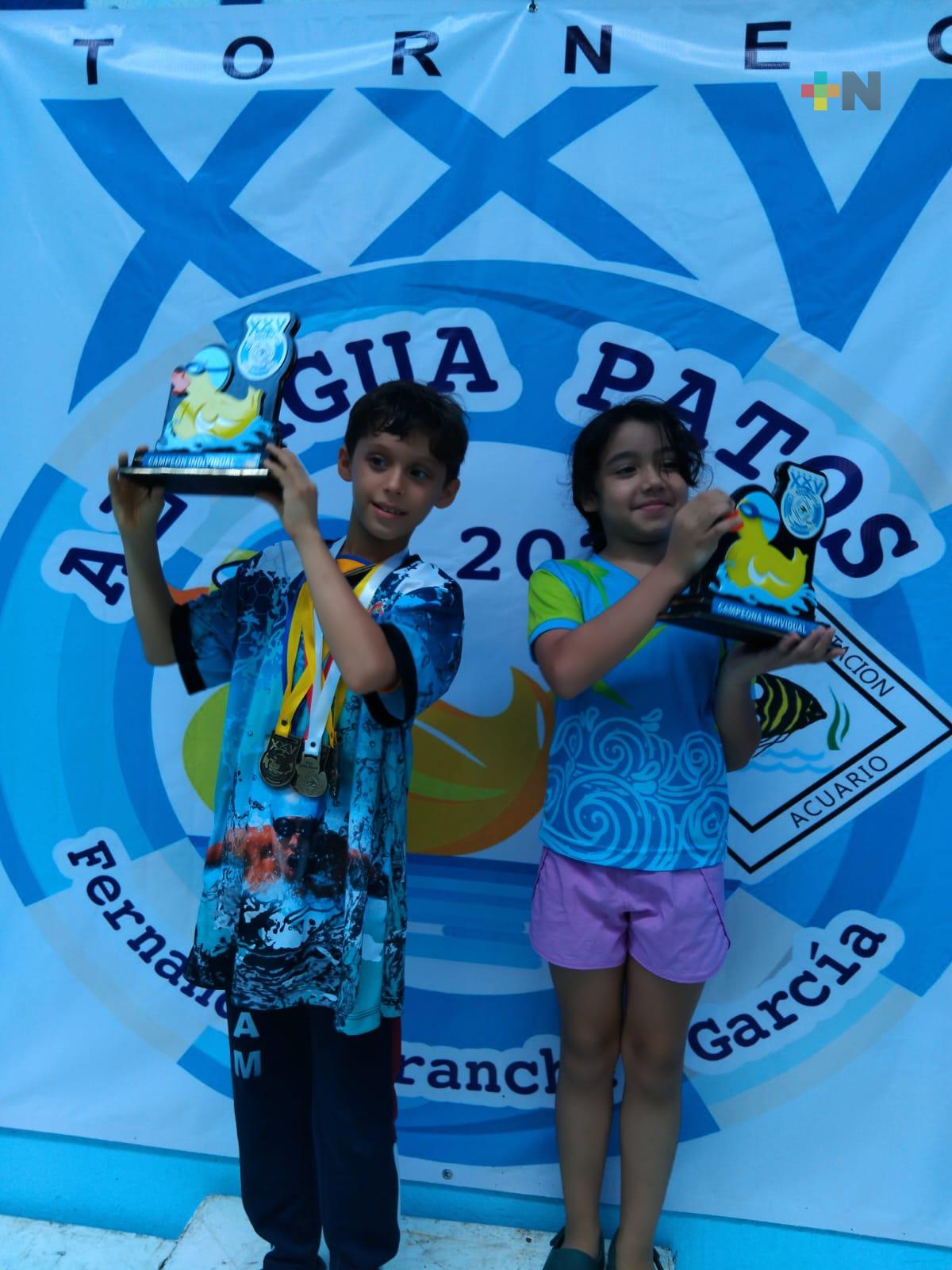 Los campeones individuales por categorías fueron: 6 y menores: Carolina Medina (Nutrias) y Matías Benito (Huracanes), 7-8 años: Miranda Carrera (Mares) y Emmanuel Alfaro (Peyrani), 9-10 años: Camila Sánchez (Aquabel) y Ángel Vázquez (Aquascorp).