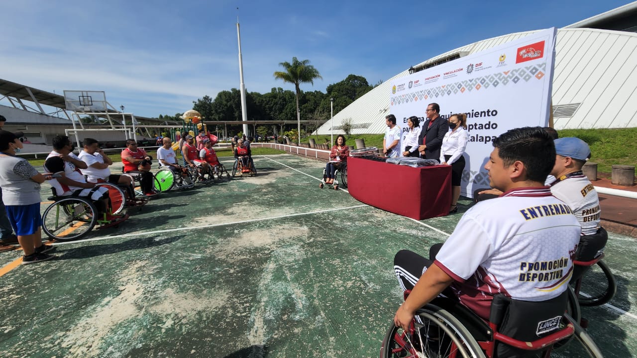 Xalapa, Ver.-La Secretaría de Seguridad Pública a través de la Dirección General de Vinculación Institucional en coordinación con la Subdirección del Patrimonio de la Beneficencia Pública, realizamos la entrega de equipamiento para el deporte adaptado.