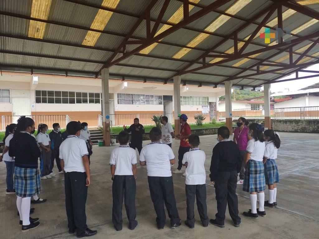 Chocamán, Ver.- La Dirección General de Vinculación Institucional de la Secretaría de Seguridad Pública (SSP) a través del área del Fomento a la Prevención a través del Deporte y la Cultura, capacita a niños y niñas de diferentes escuelas del municipio de Chocamán, como parte de sus estrategias para disminuir las conductas antisociales, prevenir la violencia y el delito.