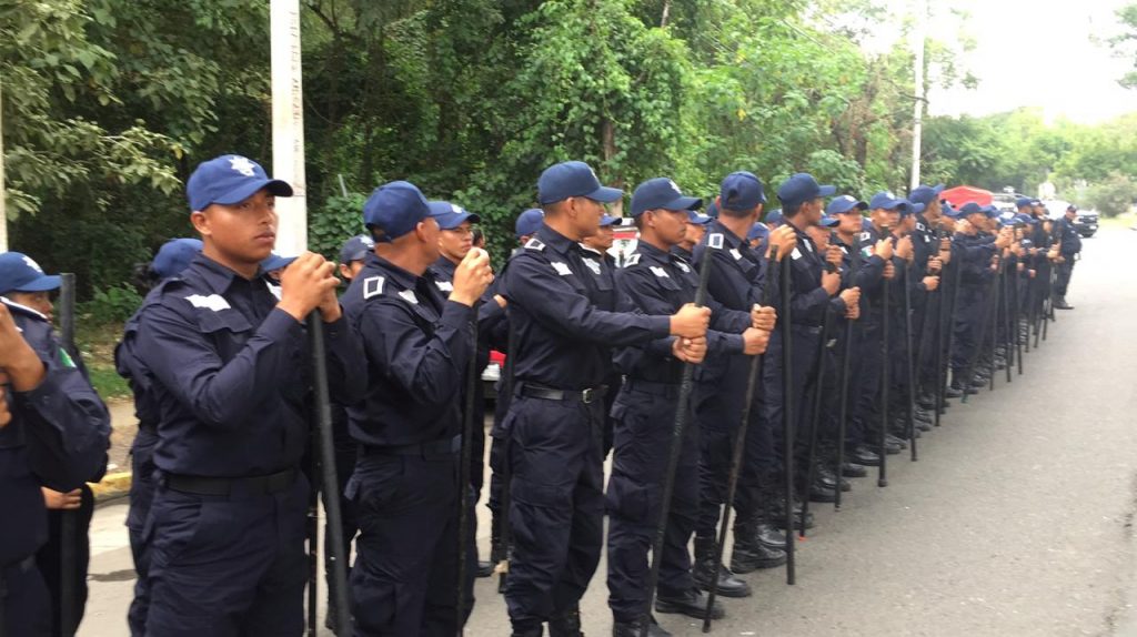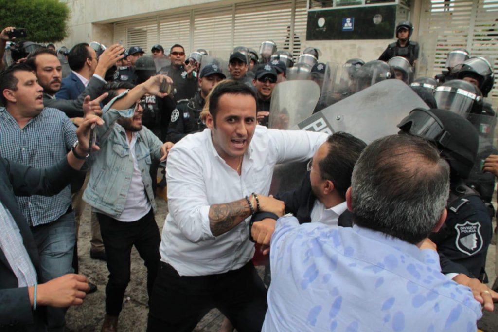 Ante la llegada de grupos afines al Partido Acción Nacional liderados por los legisladores Sergio Hernández, María Josefina Gamboa Torales, Omar Miranda y Juan Manuel Unanue Abascal, granaderos se mantuvieron alertas para salvaguardar la seguridad de los manifestantes y los trabajadores que se encuentran laborando en las instalaciones de la Fiscalía General del Estado.