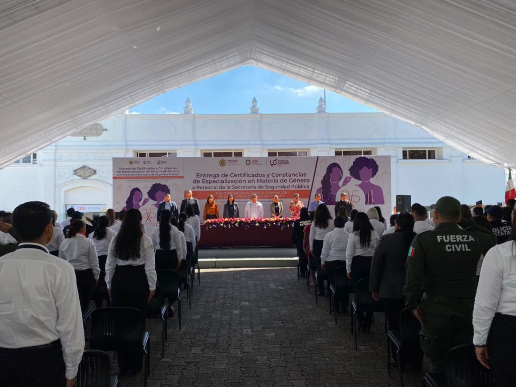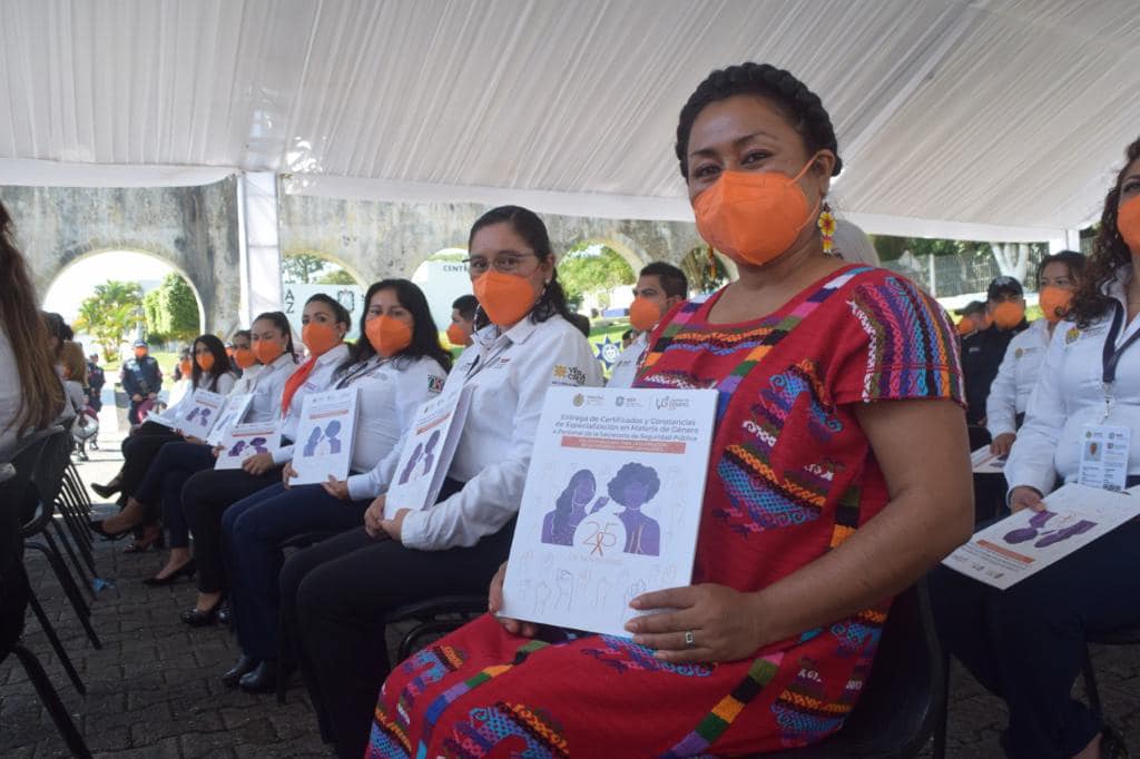 Xalapa, Ver.- En el marco del Día Internacional de la Eliminación de la Violencia Contra las Mujeres, la Secretaría de Seguridad Pública llevó a cabo la Entrega de Certificados y Constancias de Especialización en Materia de Género.