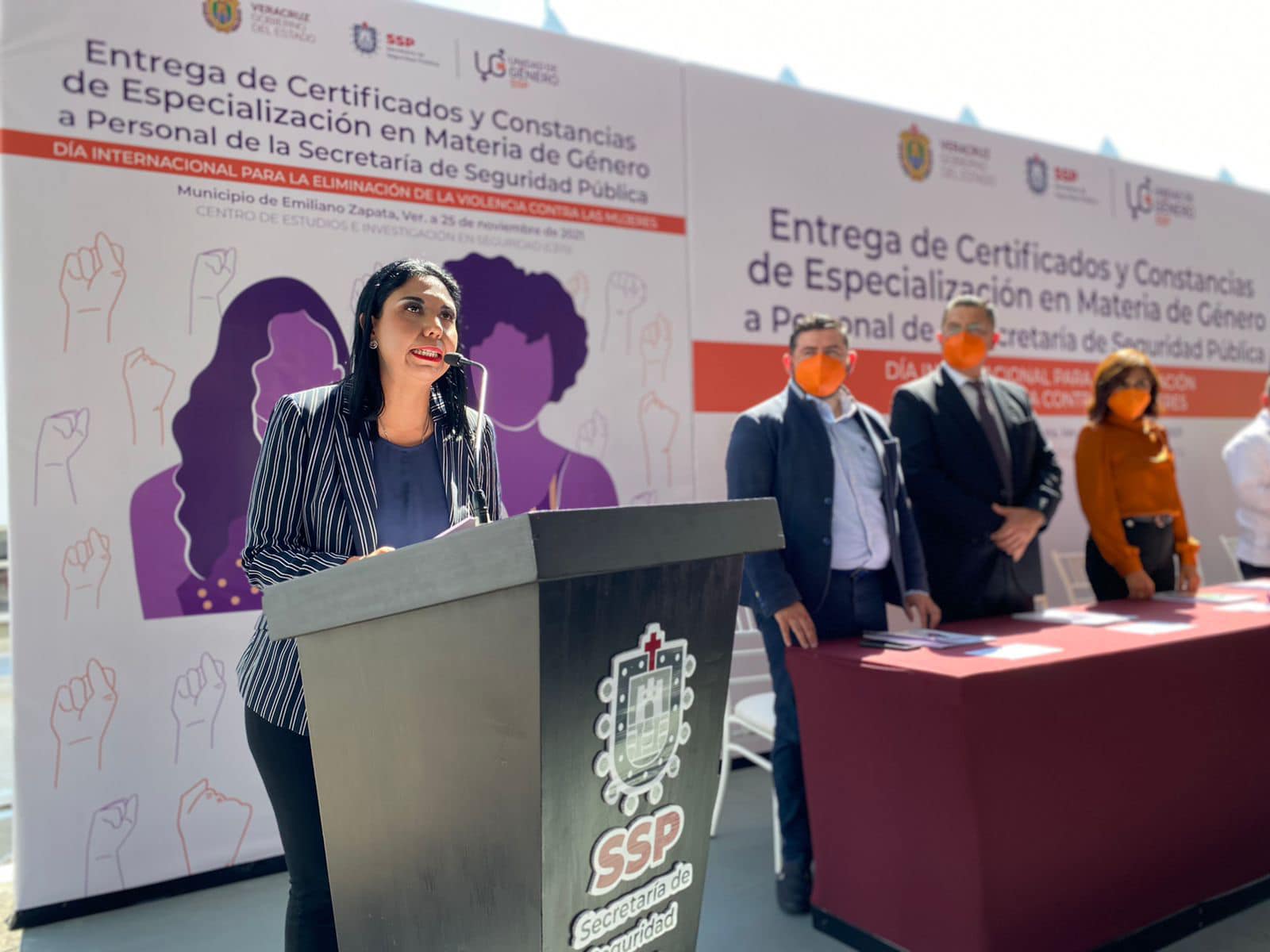 Xalapa, Ver.- En el marco del Día Internacional de la Eliminación de la Violencia Contra las Mujeres, la Secretaría de Seguridad Pública llevó a cabo la Entrega de Certificados y Constancias de Especialización en Materia de Género.