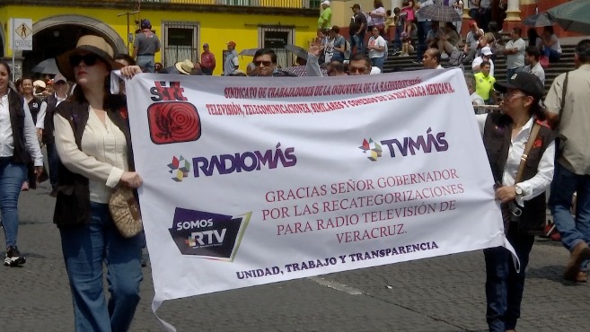 “Gracias señor gobernador por las recategorizaciones para Radiotelevisión de Veracruz”, fue el mensaje emitido en una pancarta que portaron los trabajadores del gremio mayoritario en este medio de comunicación público.